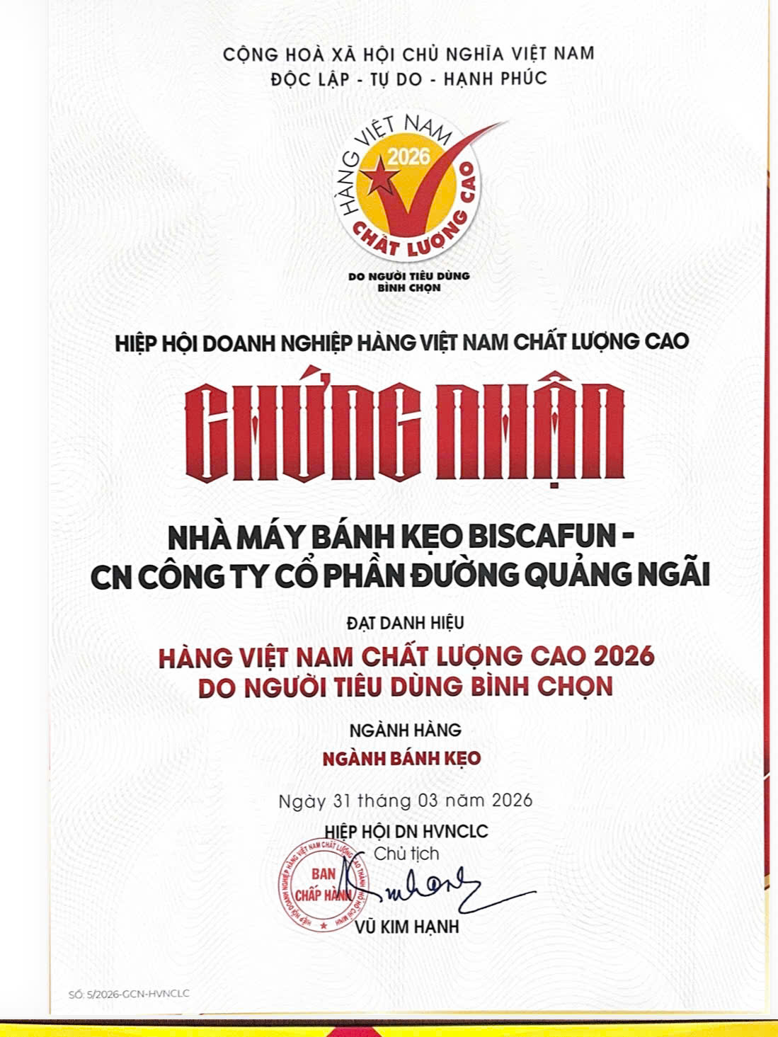 BISCAFUN - ĐẠT DANH HIỆU HÀNG VIỆT NAM CHẤT LƯỢNG CAO 2026 Thứ hai, 09:15 Ngày 06/04/2026 Tin tức & sự kiện khác BISCAFUN - ĐẠT DANH HIỆU THƯƠNG HIỆU QUỐC GIA 2024-2026 BISCAFUN - ĐẠT DANH HIỆU HÀNG VIỆT NAM CHẤT LƯỢNG CAO 2025 BISCAFUN - ĐẠT DANH HIỆU THƯƠNG HIỆU QUỐC GIA 2022-2024 BISCAFUN - ĐẠT DANH HIỆU HÀNG VIỆT NAM CHẤT LƯỢNG CAO 2024 BISCAFUN - ĐẠT DANH HIỆU HÀNG VIỆT NAM CHẤT LƯỢNG CAO 2023 BISCAFUN - ĐẠT DANH HIỆU HÀNG VIỆT NAM CHẤT LƯỢNG CAO 2022 BISCAFUN - ĐẠT DANH HIỆU HÀNG VIỆT NAM CHẤT LƯỢNG CAO 2020-2021 BISCAFUN - ĐẠT DANH HIỆU HÀNG VIỆT NAM CHẤT LƯỢNG CAO - CHUẨN HỘI NHẬP 2019 BISCAFUN - ĐẠT DANH HIỆU HÀNG VIỆT NAM CHẤT LƯỢNG CAO 2019 BISCAFUN - ĐẠT DANH HIỆU HÀNG VIỆT NAM CHẤT LƯỢNG CAO 2018